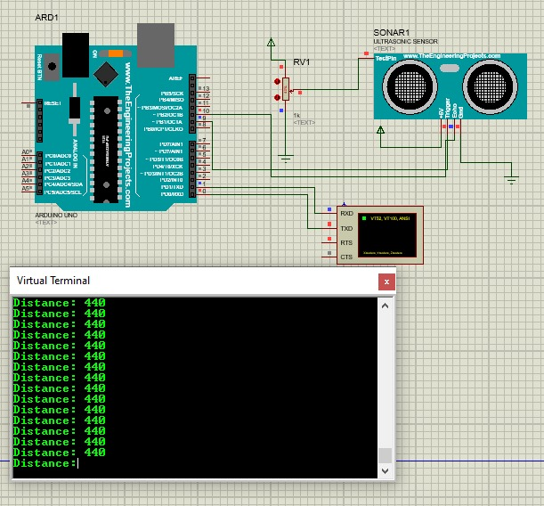 Thus the distance of the obstacle is measured using ultrasonic sensor and display the value in serial monitor using Arduino UNO controller.
