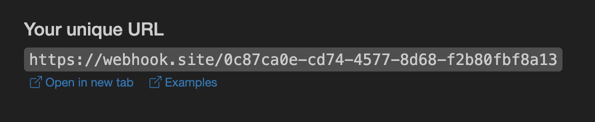 Copy this URL, and it can be used as a Webhook. The sample here is https://webhook.site/0c87ca0e-cd74-4577-8d68-f2b80fbf8a13.