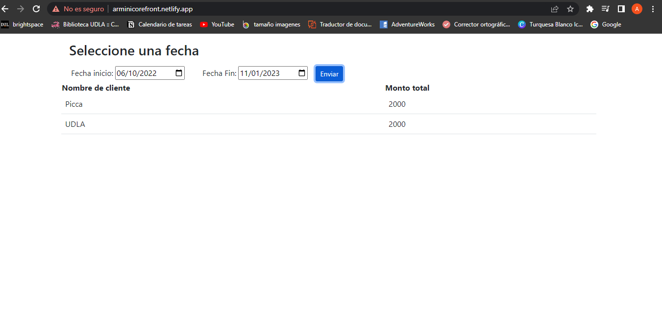 El frontend en angular tiene como funcionalidad mostrar el total pagado de contratos que tienen hacia un cliente. Este monto se calcula en base a una fecha de inicio y fecha de fin. Con estas fechas se calcula el monto total pagado en base a los contratos que se encuentran dentro de este límite. Para poder obtener toda esta información, se envía las fechas de inicio y de fin hacia una API creada en .NET. Esta API se encuentra en el siguiente enlace https://github.com/AlainRuales01/MinicCoreBackEnd