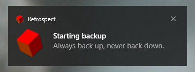 A native Windows toast notification is shown for a few seconds with a message telling you a backup is starting.