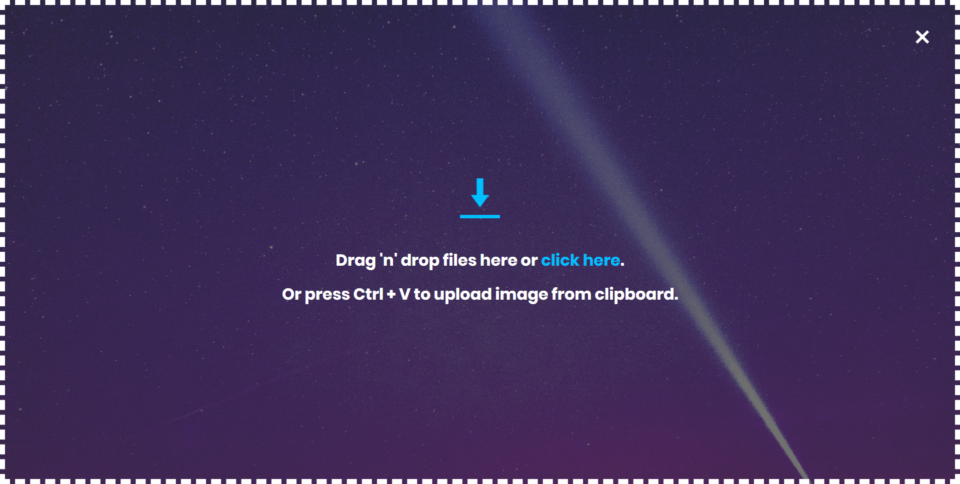 options.justOverlay] (Boolean) - If it is sets to false, it will open custom file dialog with more information about upload. Defaultfalse