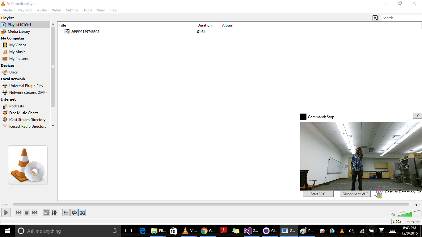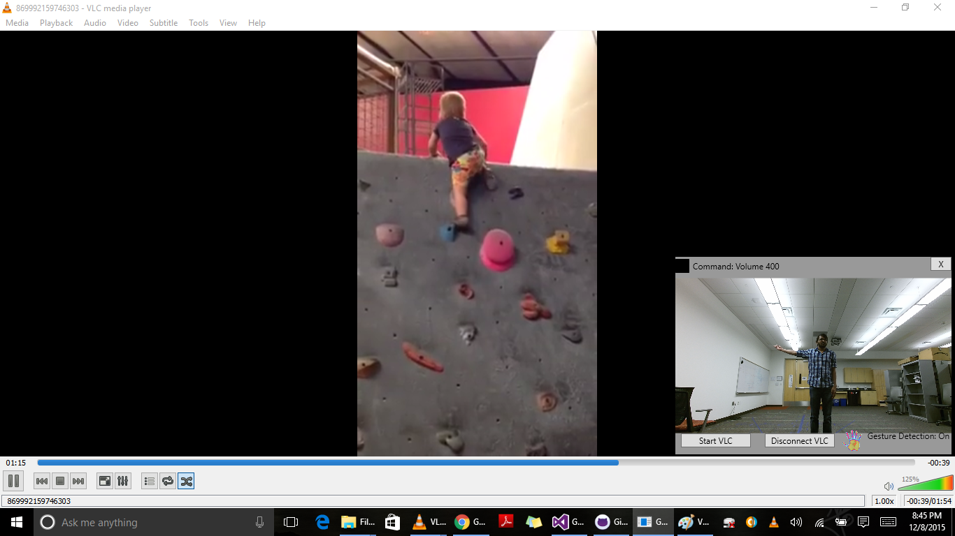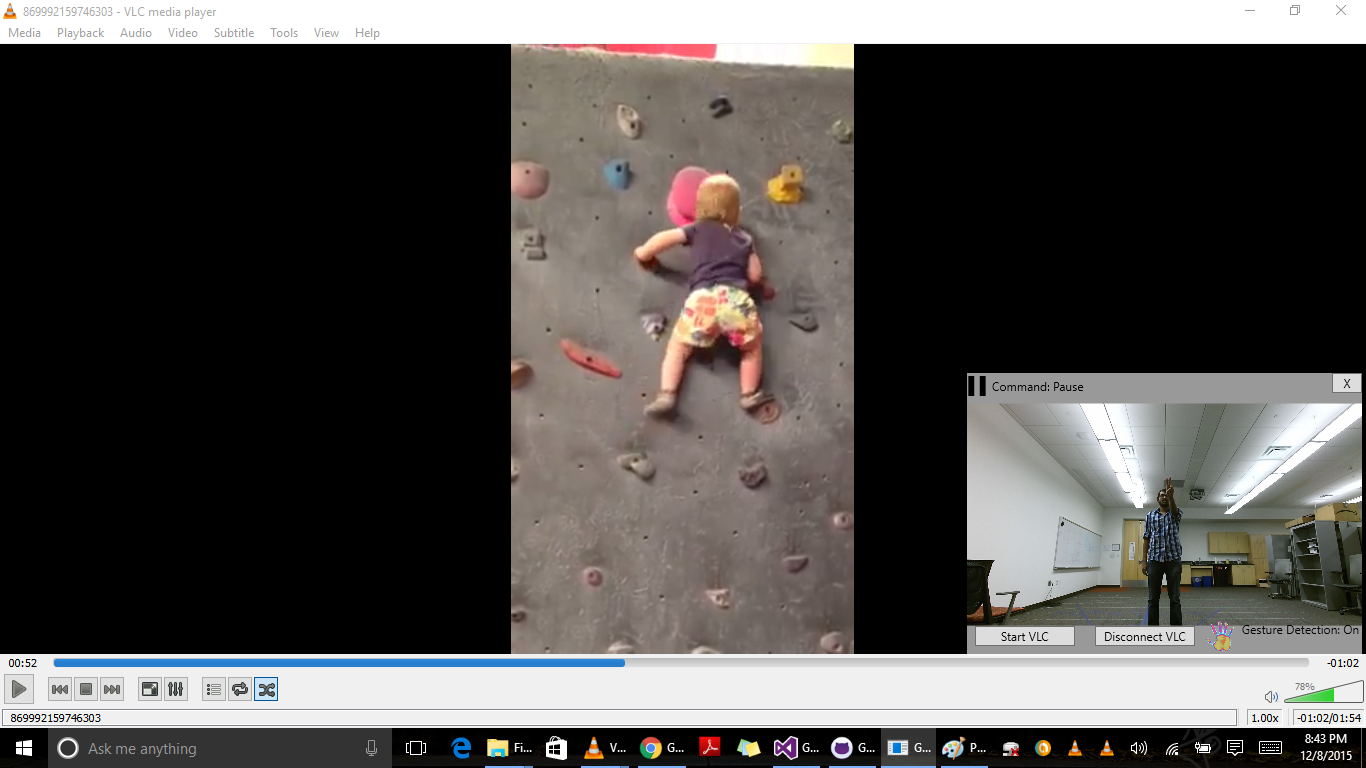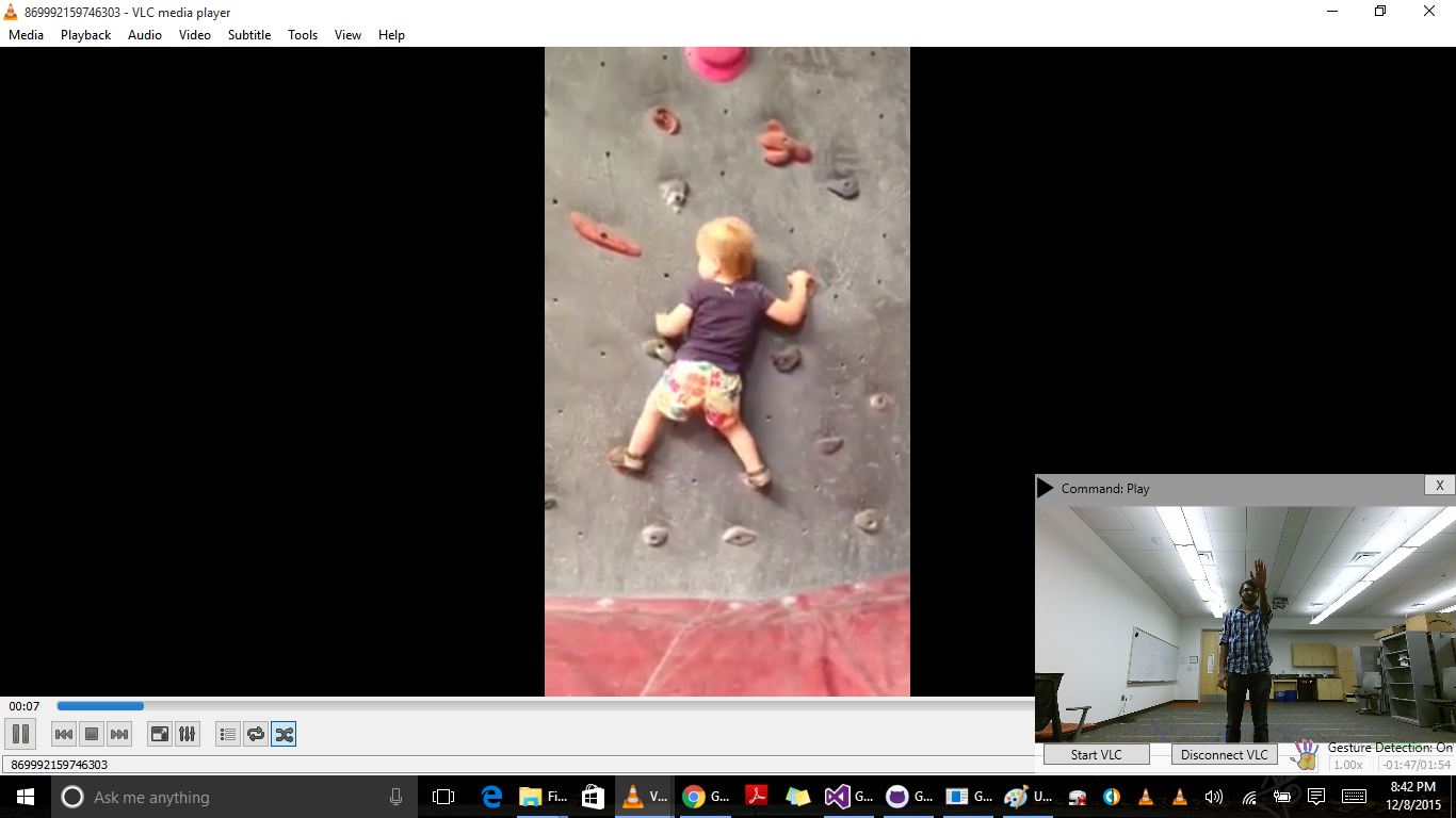 A project using Microsoft Kinect to control video by Detecting Gestures. Developing this project as part of CSE 5369 - Computer Vision -Sensing, Localization and control coursework at UT Arlington. It allows to control VLC Media Player using gestures with the help of Microsoft Kinect using the Skeleton Model.