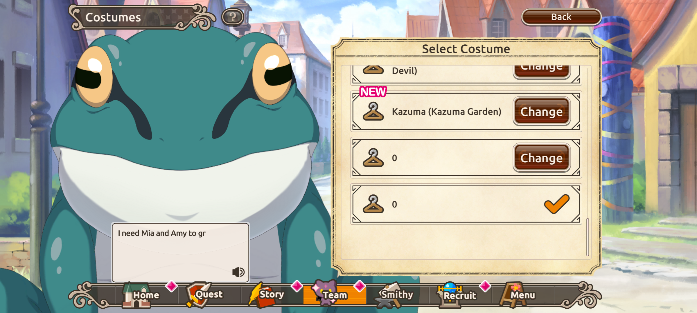 All costumes and backgrounds are unlocked. Note that these customizations are not stored on the server by client design, so they are not synced across accounts and devices.