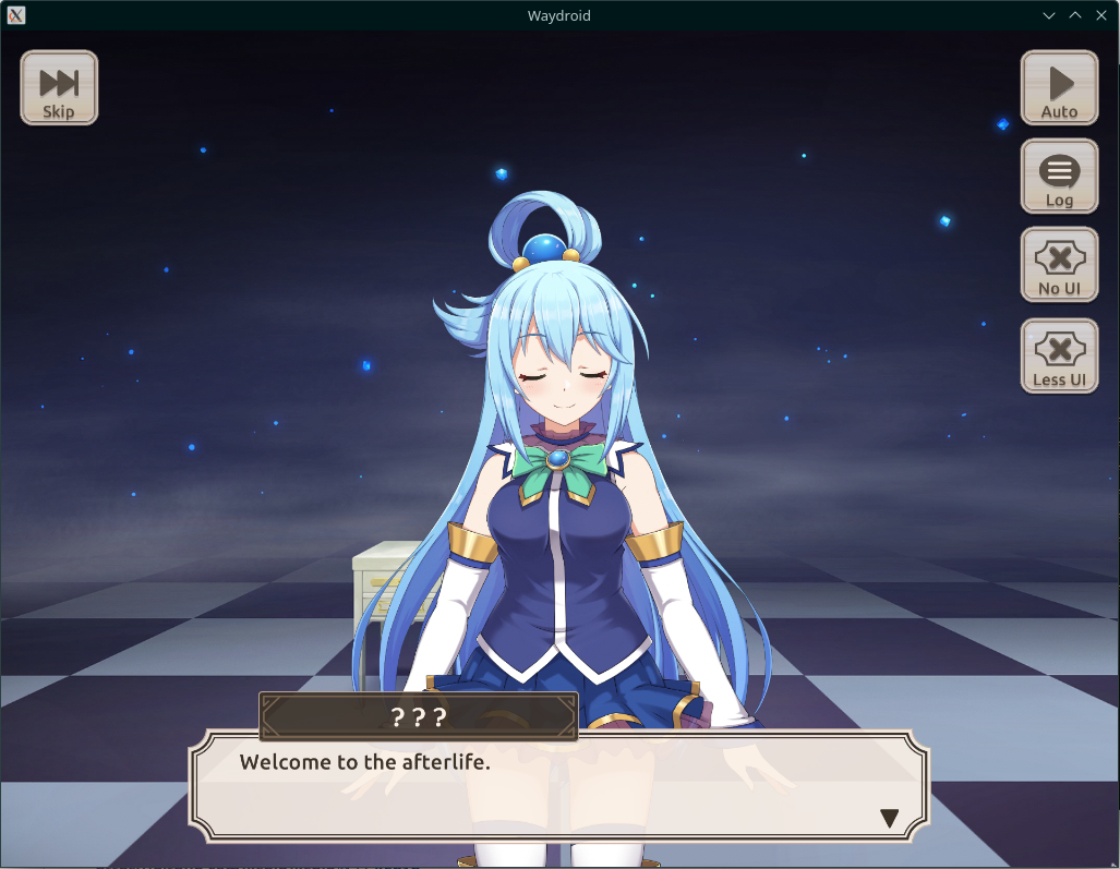 The first scene ("And so the Adventure Begins!") works. The home and profile menus work, and most actions there don't cause errors (see Broken features for details), but neither they save any progress.
