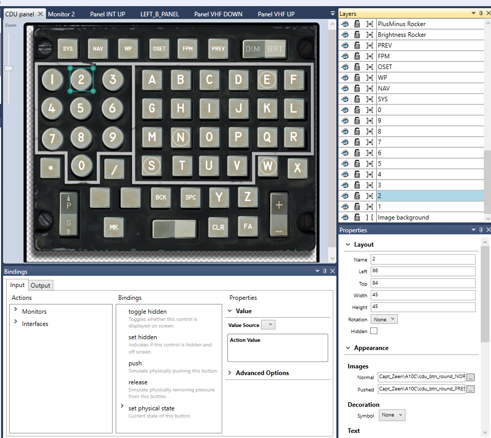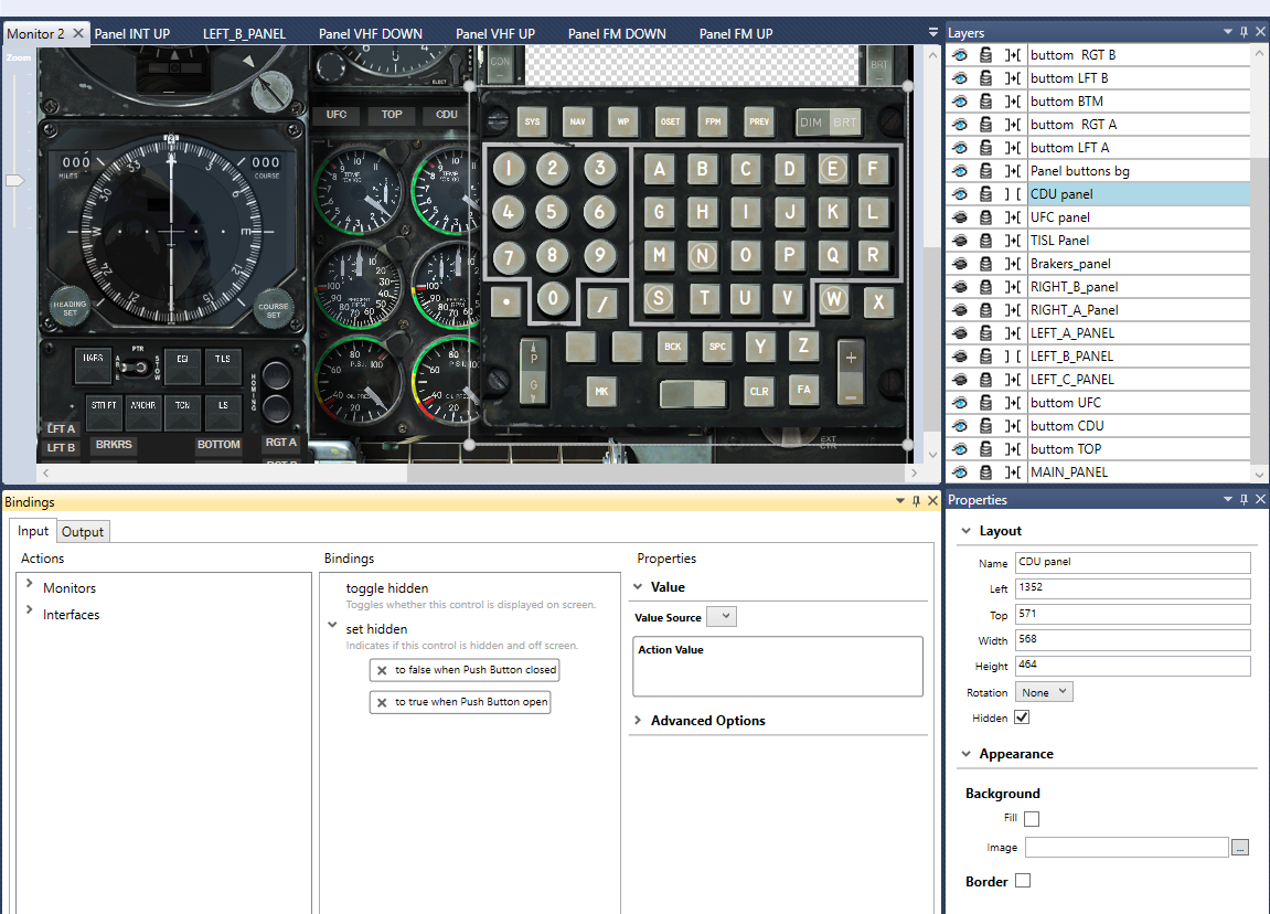 In this image note how all the main sections of the profile are defined as panels. Selected you can see the CDU panel: