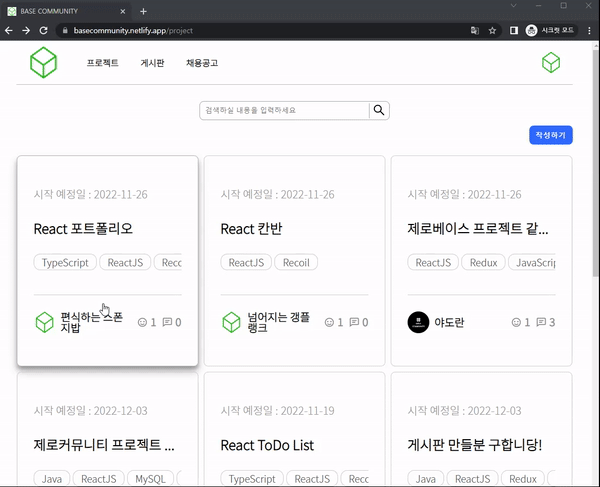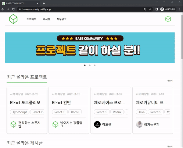 | 최근 프로젝트, 전체 프로젝트 조회 | 프로젝트 모집 |