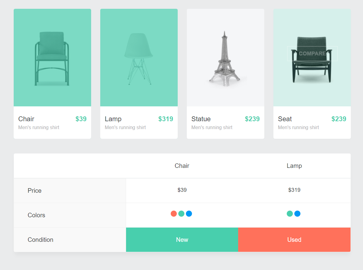 Product comparison page build using React + Redux + Bootstrap + SASS