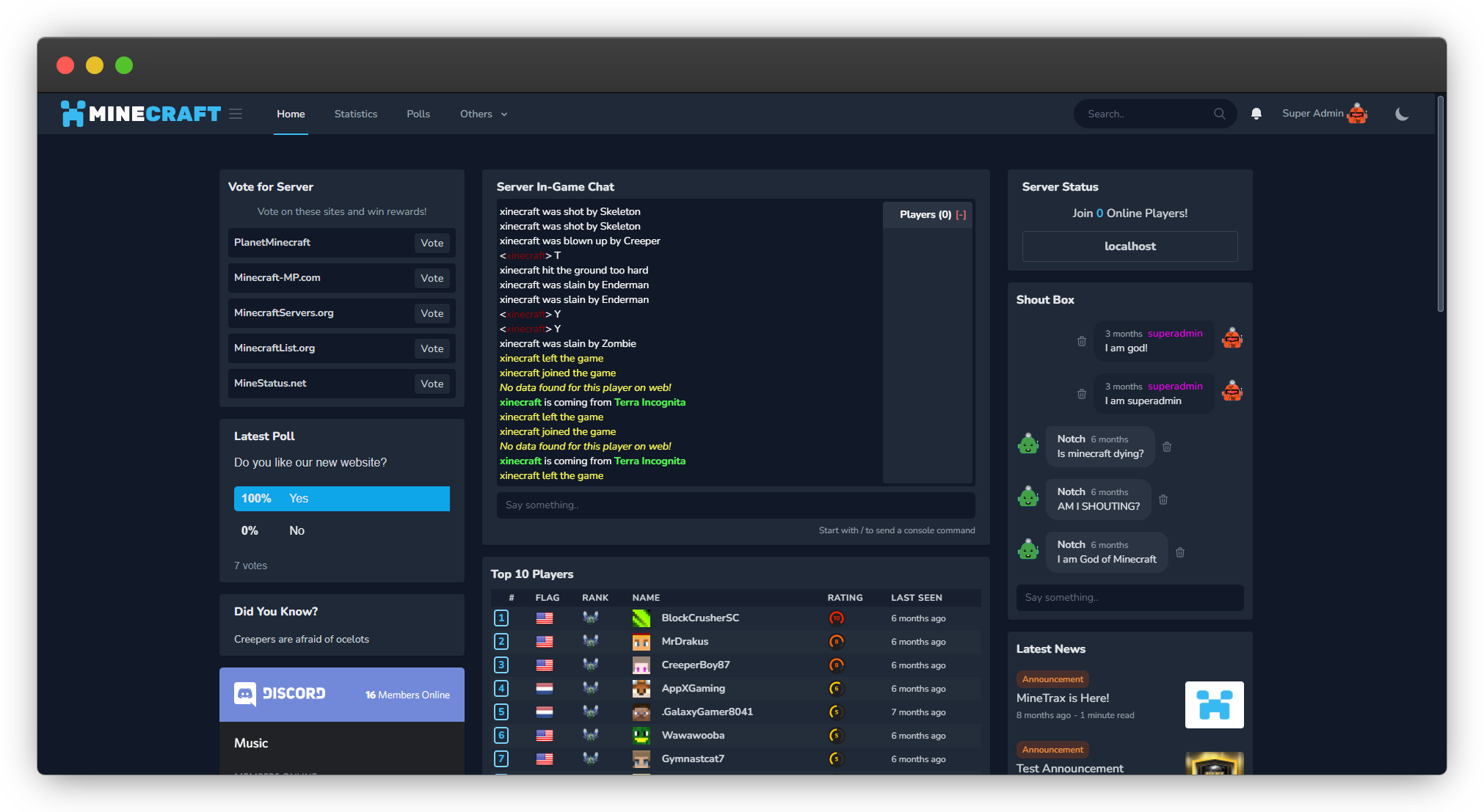 Beautiful & Rich Web & Analytics Suite for Minecraft Servers!