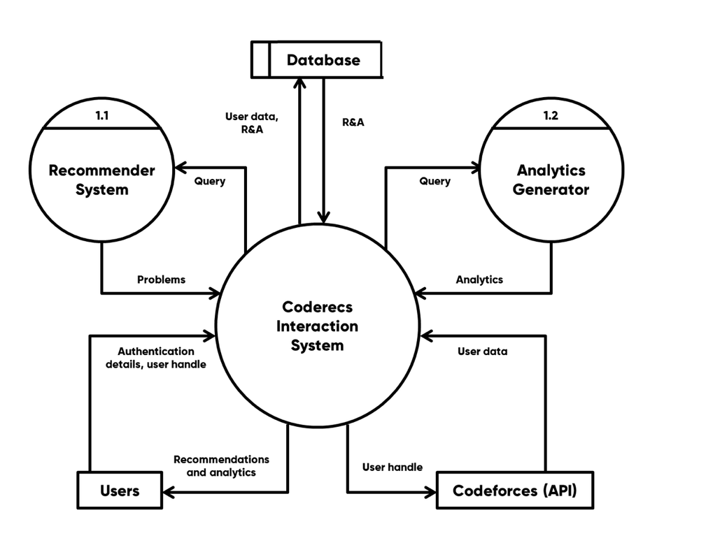 Our system ensures simplicity at all levels of the design. With our interaction system users can get access to their contest and practice analytics along with multiple recommendations based on their performance. The interaction system is coupled with two dedicated sub-systems viz the recommender and the analytics generator.