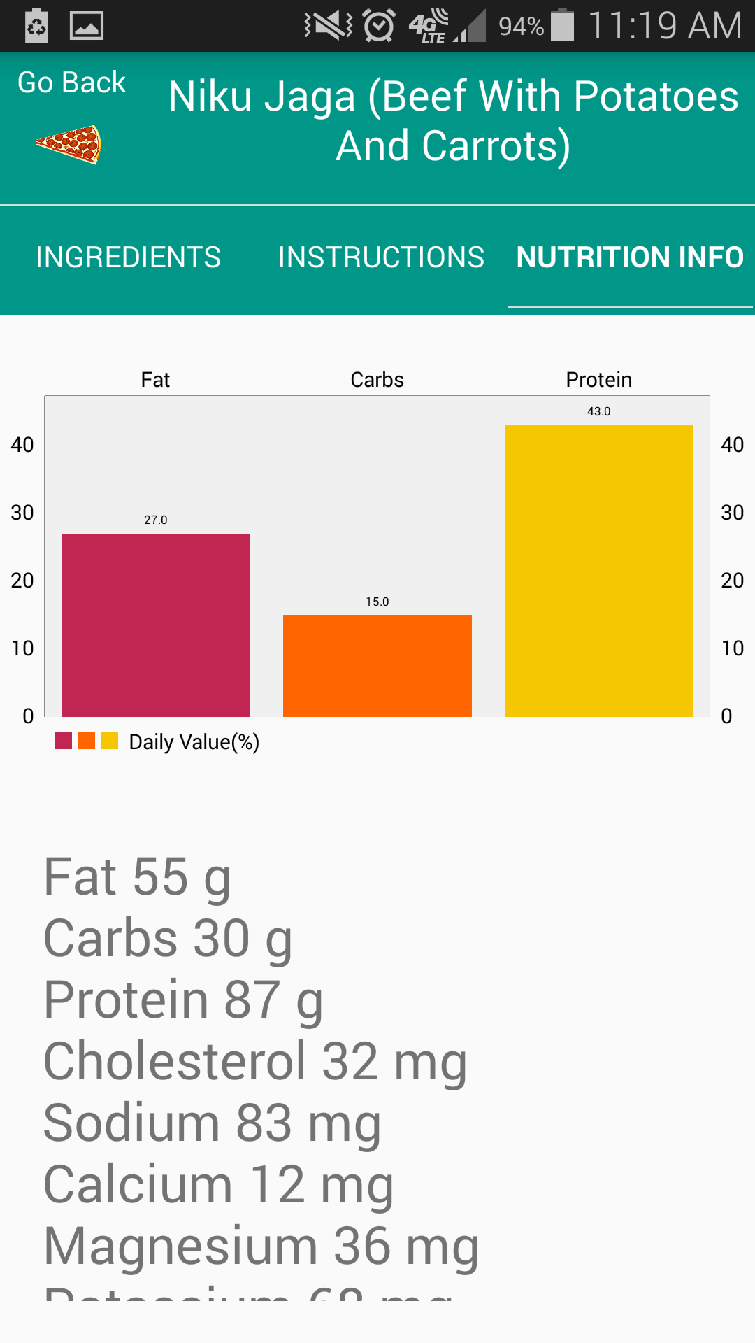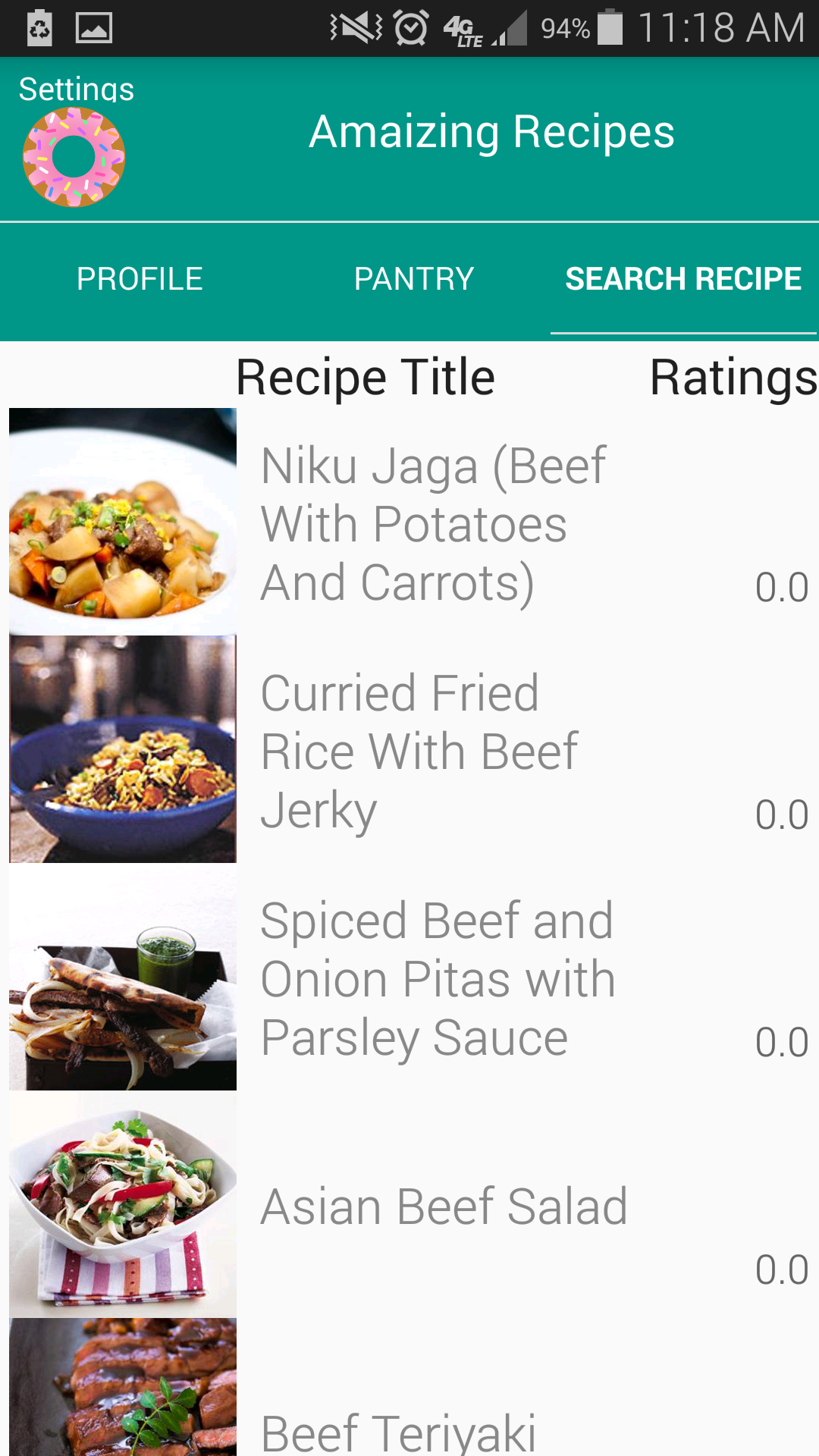 Created by the Amaizing Unicorn Team/Team 9, we created the Amaizing Recipes App for users to enter in their list of ingredients and then search for a recipe to make. Features the ability to swipe to search: after selecting a subset of ingredients from the full list, the user may just swipe from their Pantry to the next screen and the app will show the list of results; switching from showing a list of recipes by social rank or by nutrition, if recipe is searched by nutrition then there will be a bar graph that shows the nutrition facts; youtube videos for instructions; and many more.