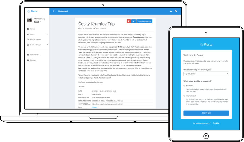 The goal of this project is to develop a new information system for the non-profit organization called Erasmus Student Network (ESN). ESN is a Europe-wide international student organization coordinating student exchange programs. It implements solutions that encourage the higher level integration of new international students.