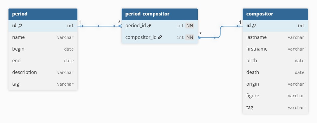 1_schema.sqldéfinit la structure (DDL). Il doit être exécuté en premier.2_data_periods.sqlimplémente la tableperiodet ses sous-entités languistiques (DML). C'est l'entité forte, donc il doit être exécuté en deuxième.3_data_compositor.sqlimplémente la tablecompositor(DML). C'est l'entité faible, donc il doit être exécuté après le DML précédent.
