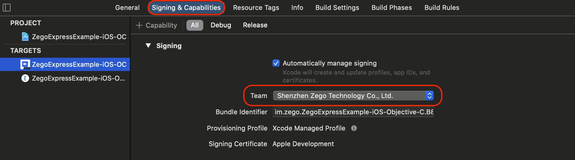 The app ID "im.zego.ZegoExpressExample" cannot be registered to your development team. Change your bundle identifier to a unique string to try again.Refer to Modify Bundle Identifier and Apple Developer Certificate above, switch to your own development certificate in
