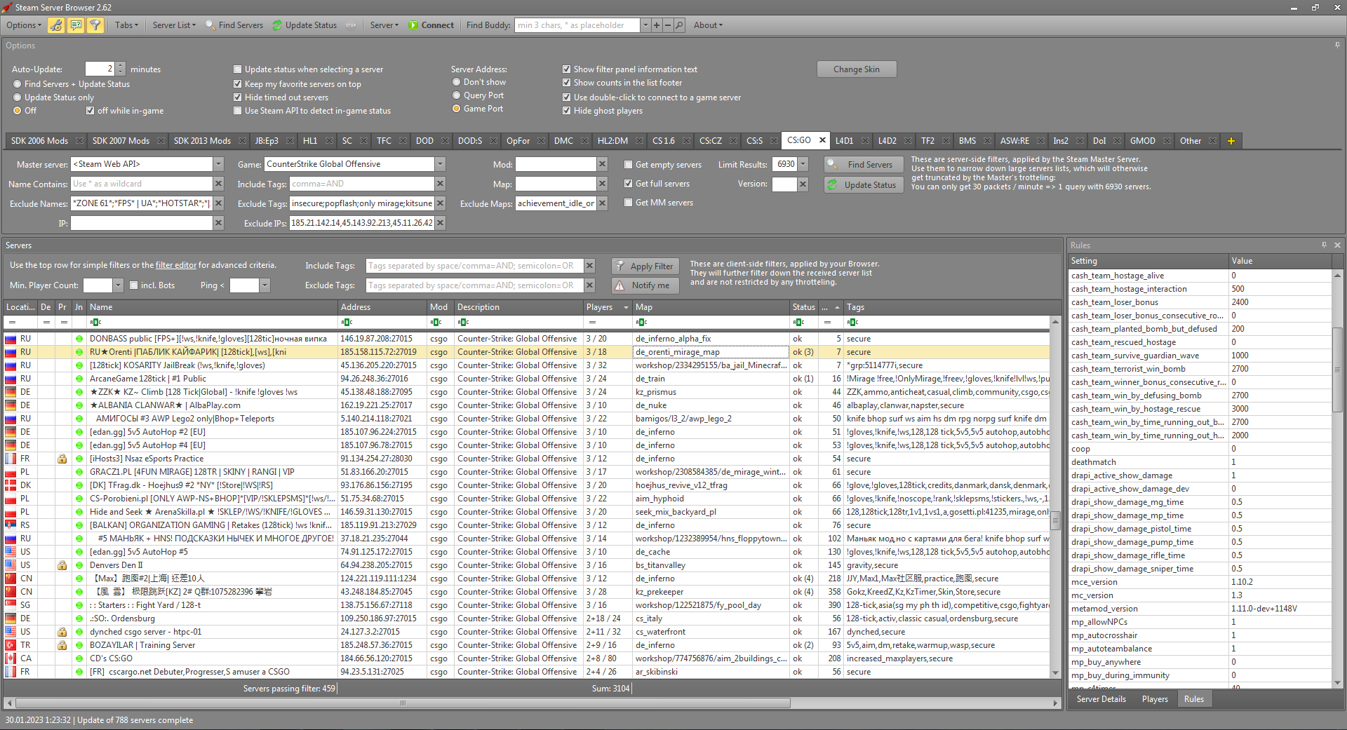 - works for all games that use Valve's master server infrastructure (e.g. CS:GO, TF2, ...)
