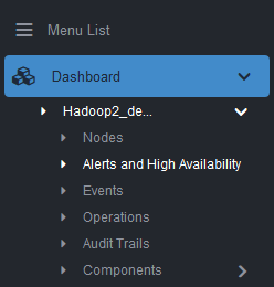 Click “Configuration >” to view and access various configurations. This opens up a list of nodes that are members of this cluster. The user is presented with options Cluster and Alerts. Refer to the screenshot as shown below.