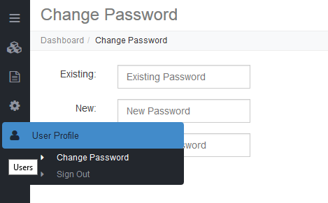 Click User icon to open a user panel. In the opened panel, user can view the name of the logged in user followed by two links as change password and sign out. This feature is accessible anytime regardless of the level of nesting in hierarchy in main view.