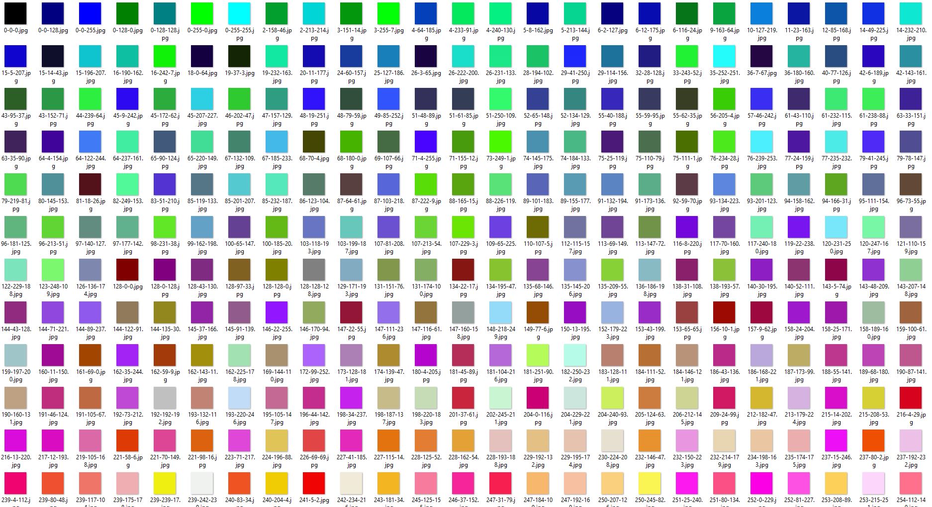 The program takes input from a file, reads everyline and creates image "JPG" for each file specified by that line. RGB, HEX 3 Digits and HEX 6 Digits are compatible.