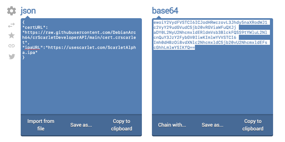 Create base64 encoding of JSON containing two keys(certURL, ipaURL)
