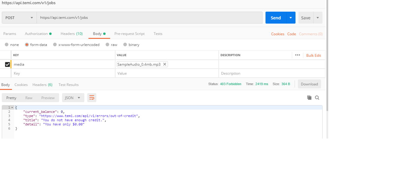 ResponseEntity response = restTemplate.exchange("https://api.temi.com/v1/jobs",