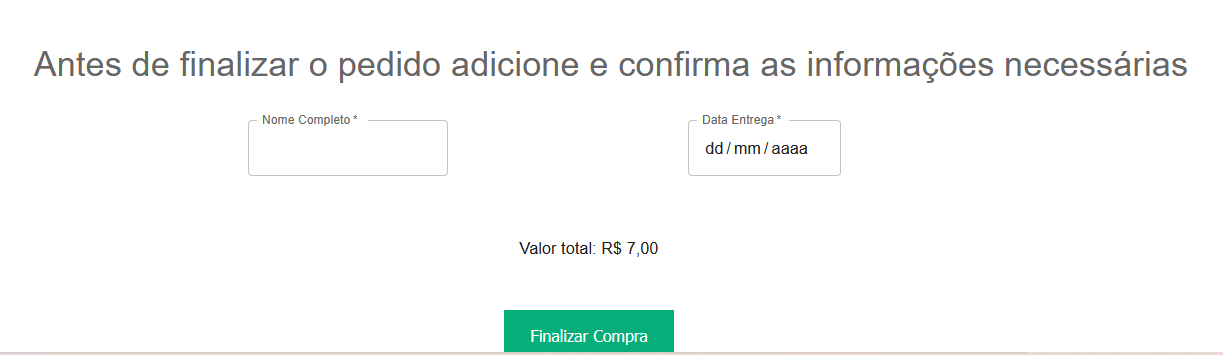 - O usuário deve entrar com Nome do Cliente, Data de Entrega e uma lista de compras