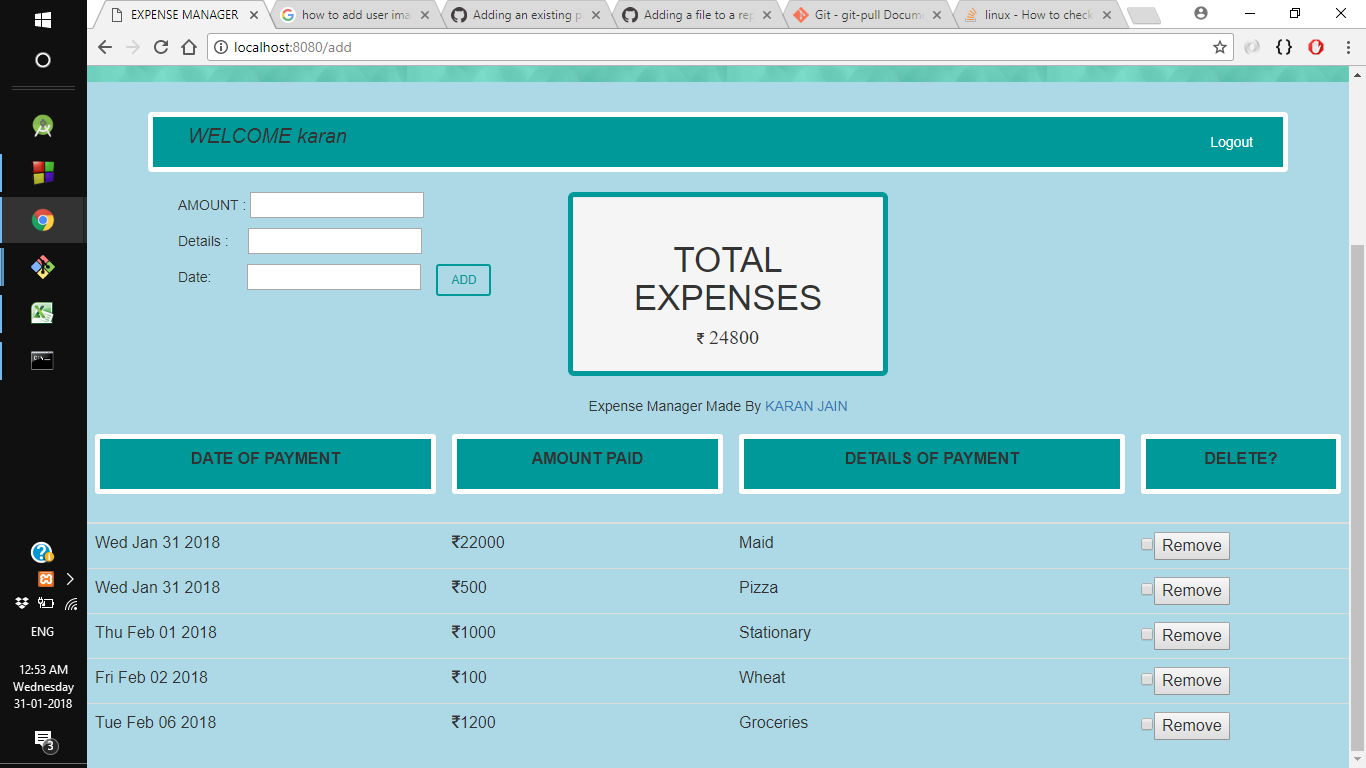 A simple to use Expense Manager for comparing your budget and monthly expenses.