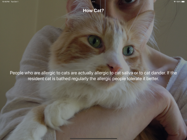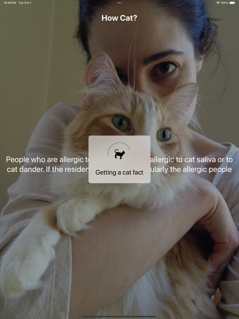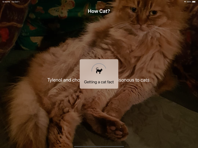 - Tap anywhere on the screen to get a new fact of cats with image with randomized fonts that supports dynamic types