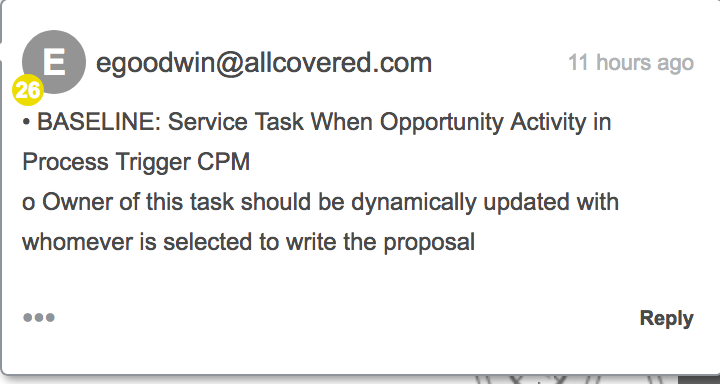 # Baseline-Service Task when CPM Triggered Feedback notification of the selected writer of proposal