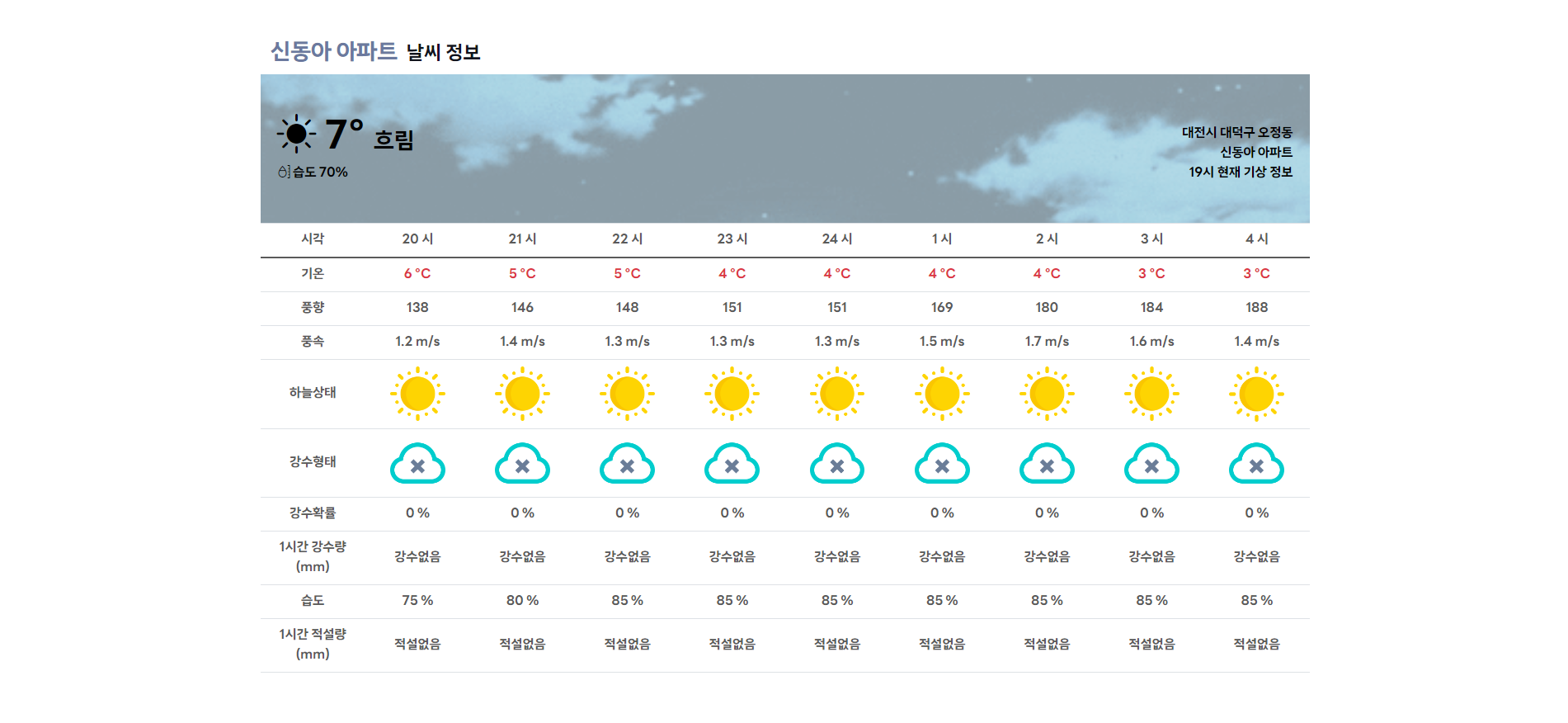 ์ค์ ์๋จ์ ๋ ์จ ๋ฒํผ์ ๋๋ฅด๋ฉด ํ์ฌ ํ์ด์ง์ ๋งค๋ฌผ ์์น ์ ๋ณด๋ฅผ ํ ๋๋ก ์ฝ ํ๋ฃจ๋์ ๋ ์จ ์๋ณด๋ฅผ ์๊ฐ์ ์์ด์ฝ์ผ๋ก ํ์ ํ ์ ์๋ค.