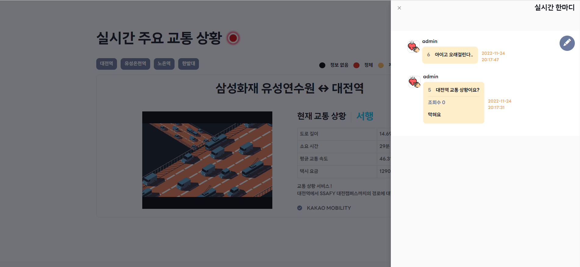 - ์ฃผ์ ์ง์ญ ์ค์๊ฐ ๊ตํต ์ํฉ