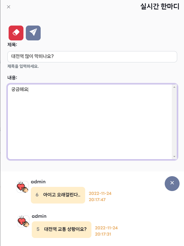 ๋๋๋งํฌ ๋ฒํผ์ ํด๋ฆญํ๋ฉด ํด๋น ์ง์ญ์ ์ค์๊ฐ ๊ตํต ์ํฉ์ ๋ณด์ฌ์ค๋ค.