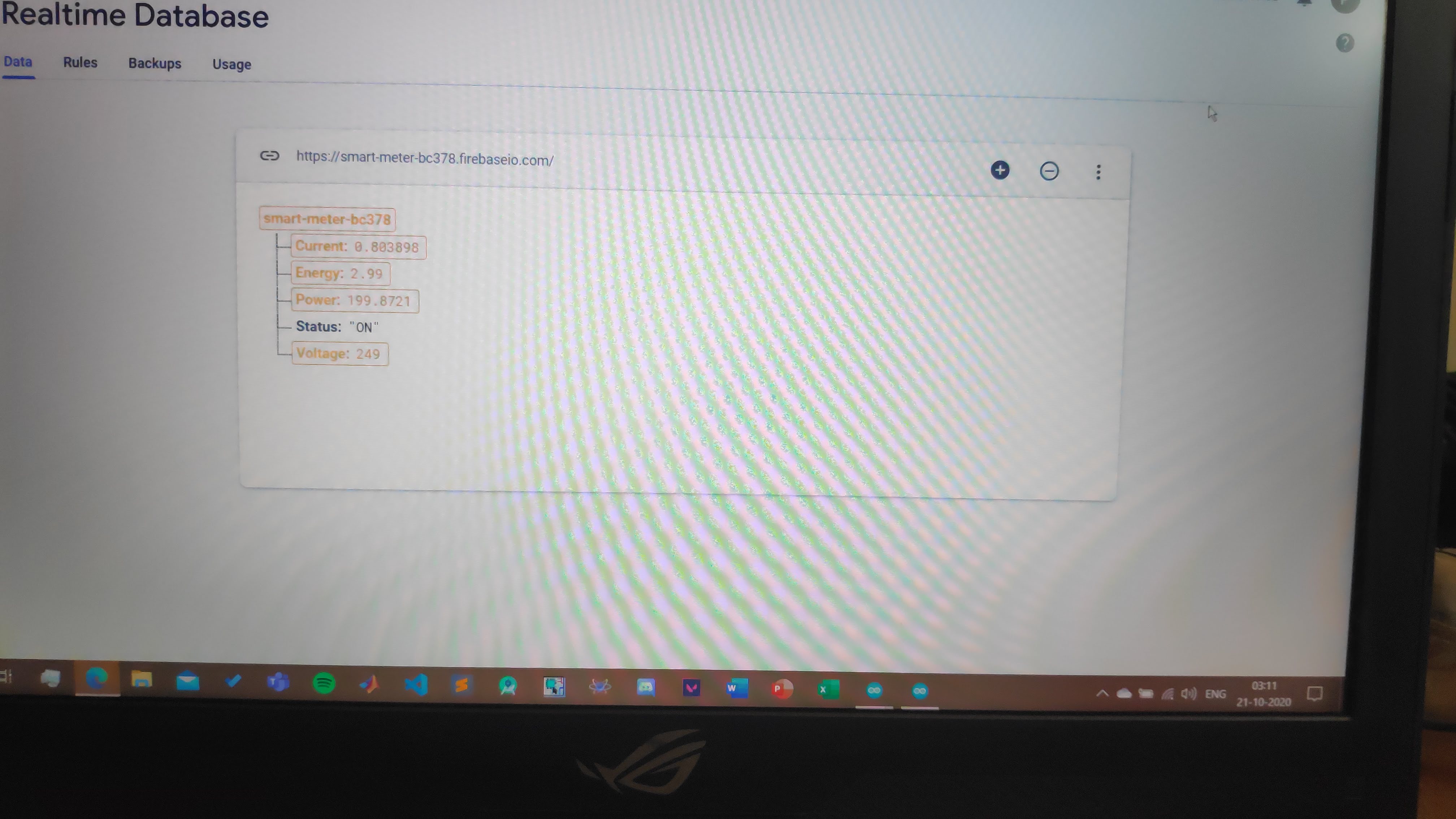 The data from the Arduino is sent to the node MCU in JSON format (JavaScript Object Notation) through serial communication. It is a format that uses key-value pairs just like a dictionary. JSON is platform-independent and is lightweight. Hence, communication between Arduino and node MCU becomes faster. Since the system works in real-time, it needs to run fast as possible.