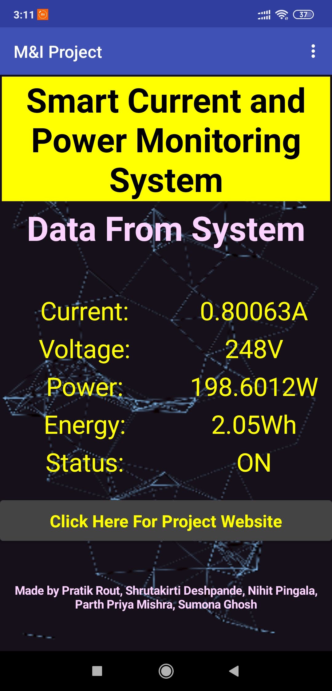 As of now the prototype can measure current and power of resistive loads on AC supply accurately as well as DC loads but that is not our goal. We are currently trying to design a circuit to measure power factor, so that we will be able to measure power drawn by inductive and capacitive loads. The final system will be able to measure current draw, power and energy consumption of all types of loads as well as power factor. The system will show the apparent power and the real power. Then we will expand this sytem to three phase systems and loads.