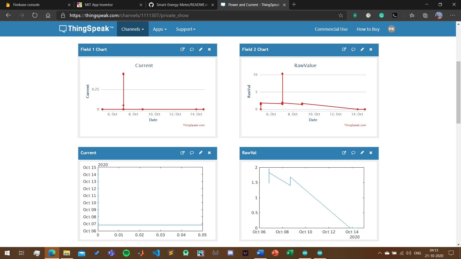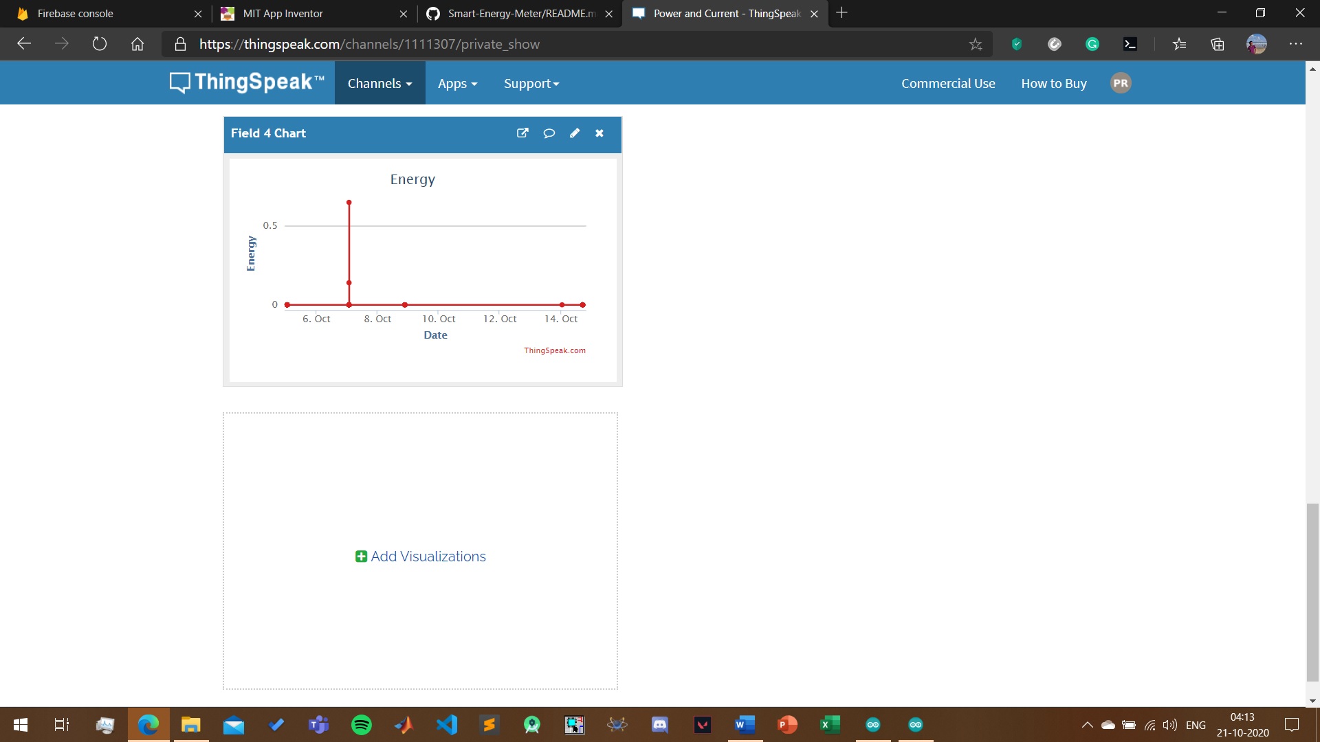 Measurement of AC/DC current drawn and power consumed by devices using ACS712 sensor and Arduino nano and calculating the energy used during operation by recording the time for which the device was working, with remote on/off capabilities. For AC - power can be measured easily once current is calculated since normal household supply voltage in the sockets is 220V - 240V(here we are using ZMPT101B voltage sensor sensor for accurate meausrement). For DC we will use a voltage divider circuit using resistors or a voltage sensor connected to the Arduino analog pin to measure the voltage. Then we will send the measured data to a smartphone and a website(thingspeak.com) over WIFI and internet. Visualization of the recorded data will be in the form of graphs and numeric displays on the website(thingspeak.com) using MATLAB analytics. Data will also be displayed on an LCD screen connected to the circuit. The data can also be recorded in excel sheet using MATLAB analytics, after it is sent to the website.