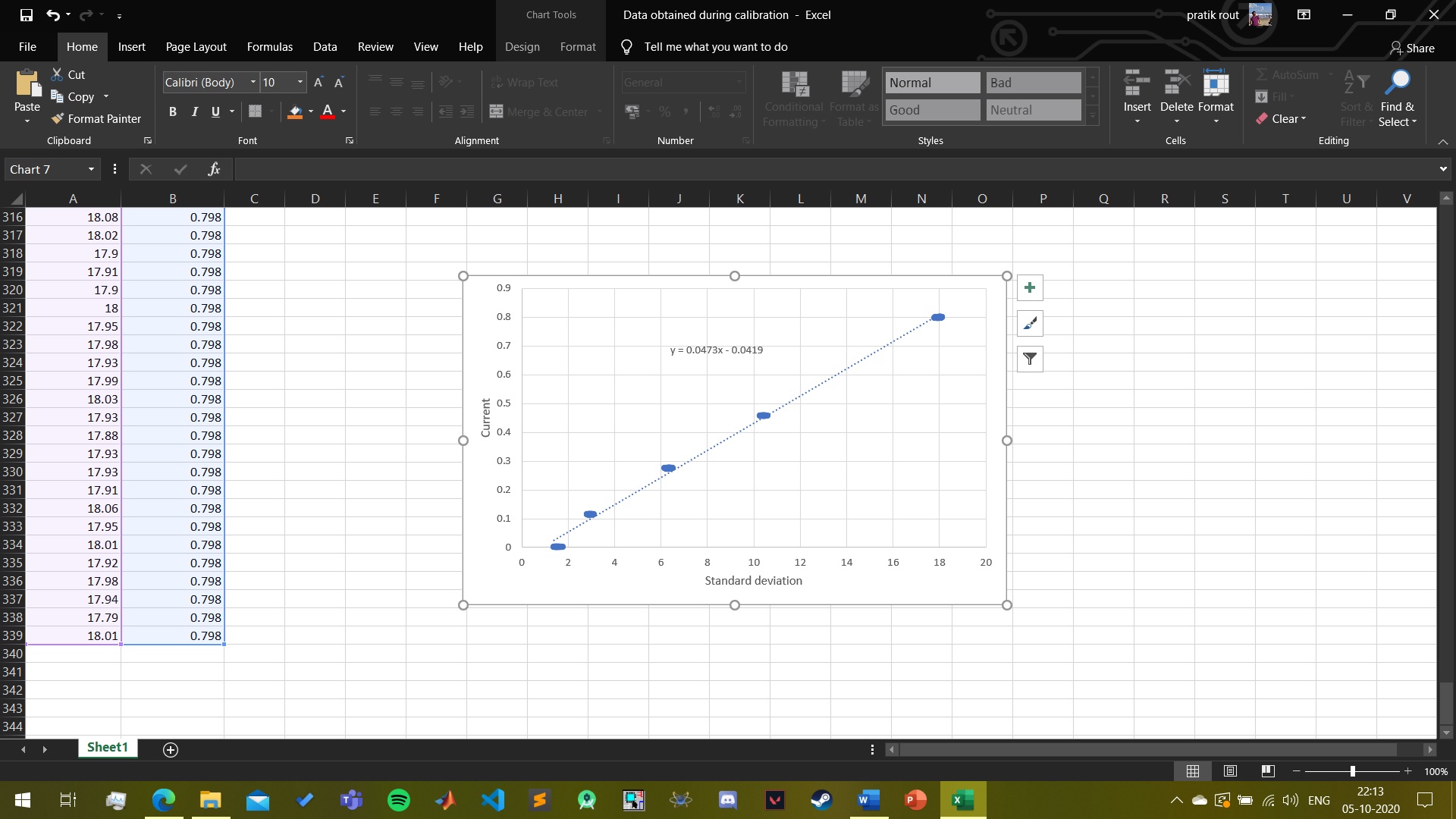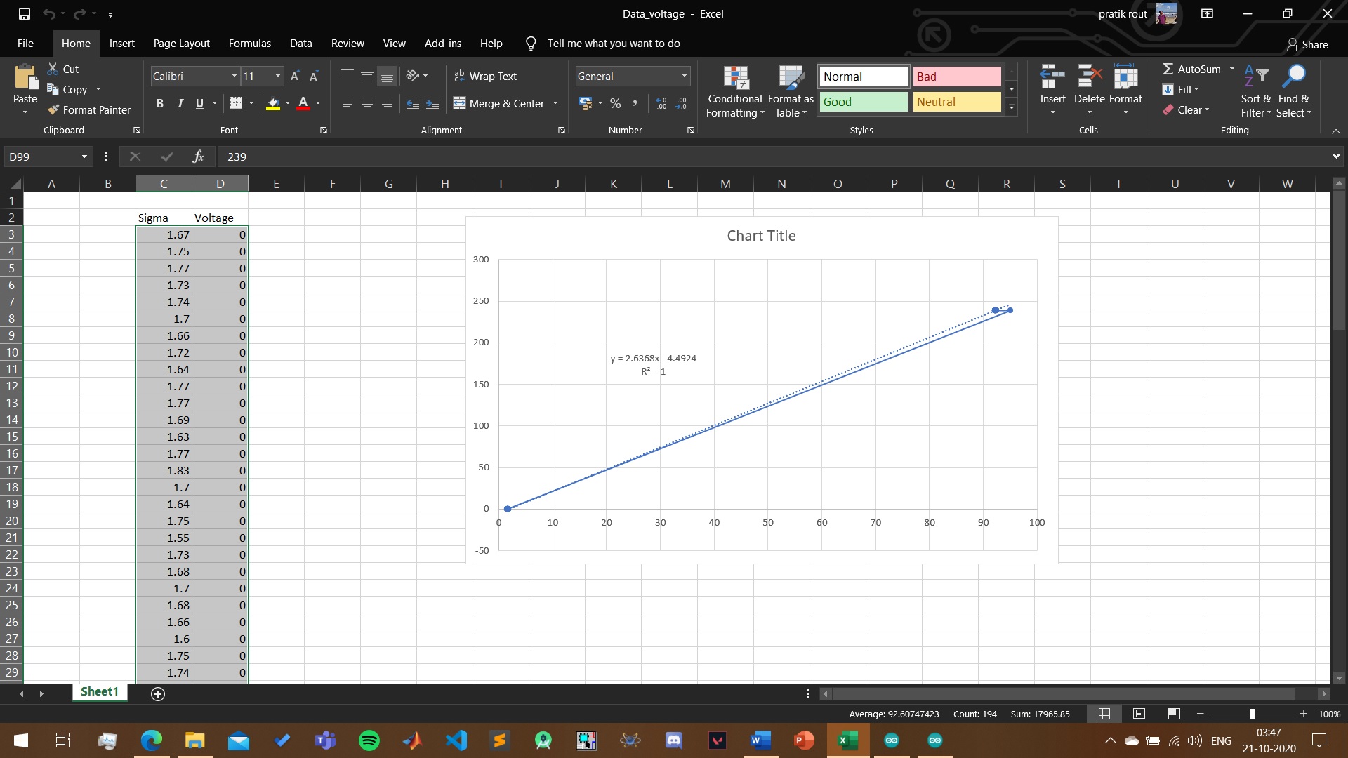Similarly for ZMPT101B sensor we plot the data and find the line and equation.