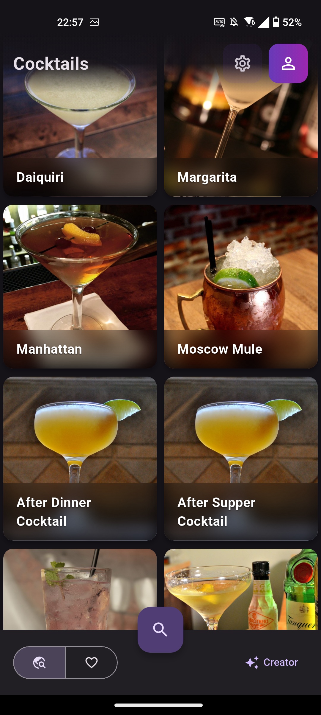 - Profile Statistics: Track your app usage with favorites count, viewed cocktails, and creator uses