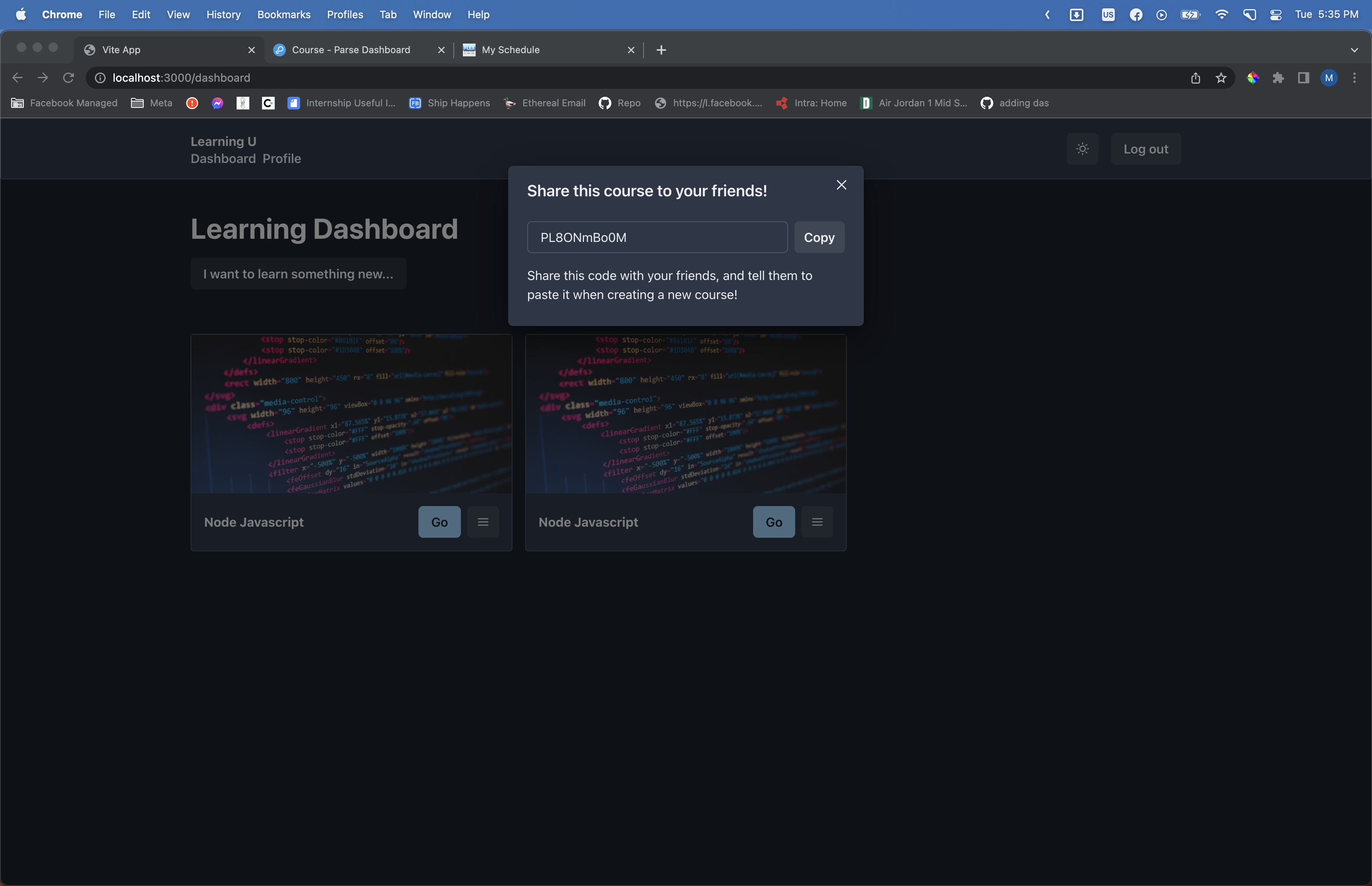 Making a Modal that enables user to share a course with their friends (UI Logic)#20