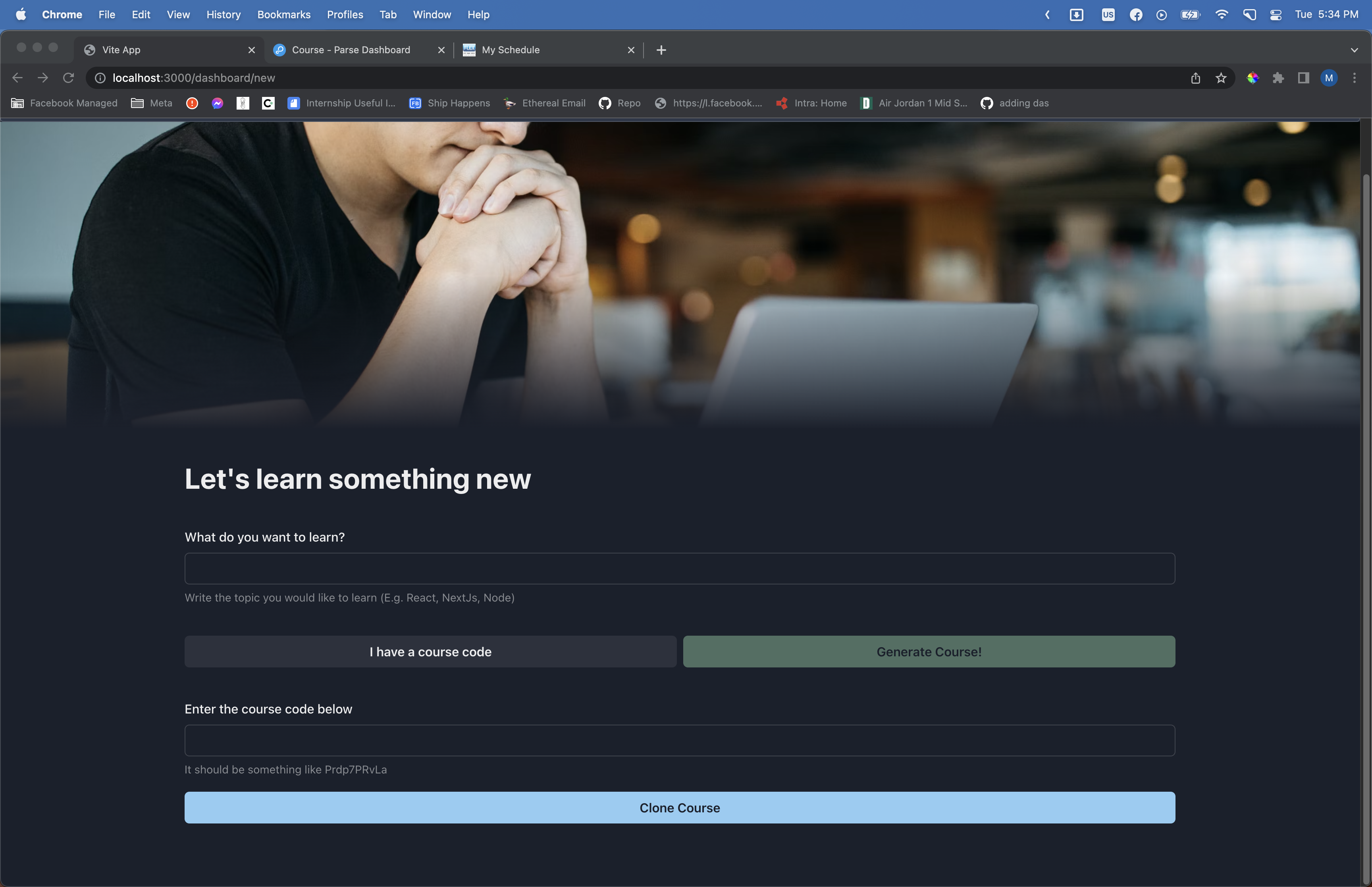 Every time a course is created using the form, it generates fresh resources using an algorithm, so even if a user tries to generate a course with the same day twice, it can get different content. There's no way to share or keep a course so it preserves the same content.