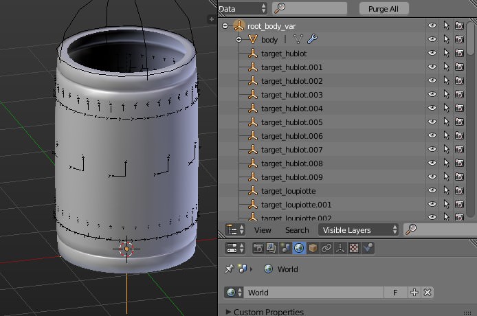 The script let the user controls how each part must be assembled to form the rocket. To do so, when creating a part, the user must place empties wich will define to position, location and scale of a children part. These empties follow an other naming convention : target_$PARTNAME.