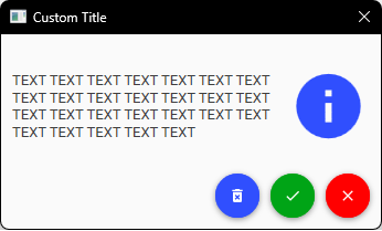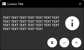 //for a custom message, title, MaterialDesign button, custom icons and default result when you close the Box