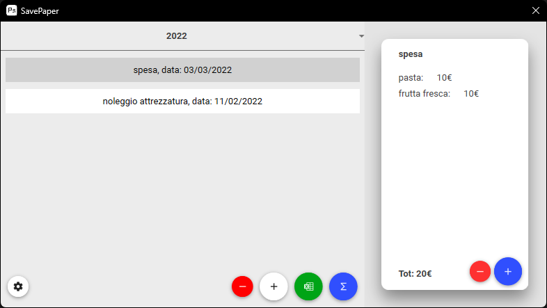 this application is usefull for saving many sales receipts, you are able to create some groups and export it to Excel files, where you can see your papers subdivided by month