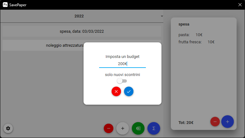 budget visualizzato con detrazione del prezzo dei vecchi scontrini: