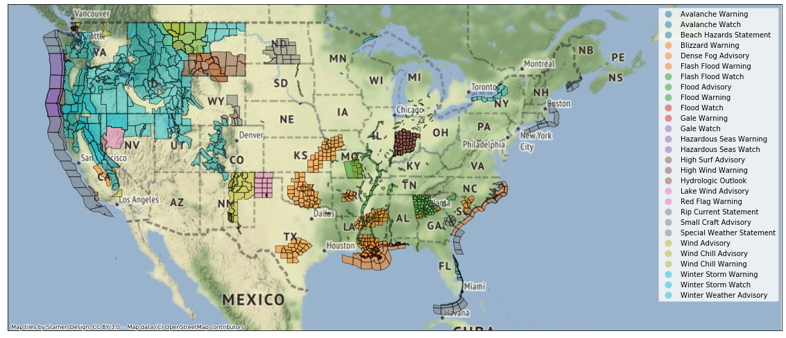 but on the plotted shapefiles, there are no tornado or severe thunderstorm product types that come up.