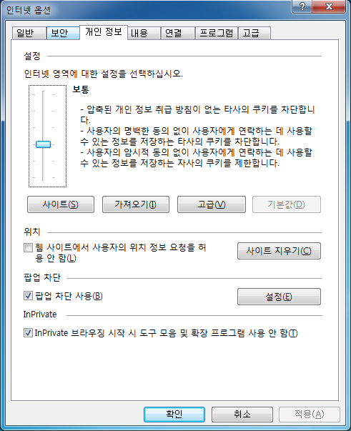 B. SSO 사용 시 Internet Explorer 설정 : IE는 기본적으로 개인정보취급방침(P3P)이 없는 타 도메인에 대한 쿠키를 허용하지 않는다. 따라서 브라우저 설정에서 SSO 대상 도메인에 대한 쿠키를 허용하도록 다음과 같이 설정한다.