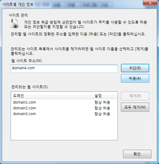 SSO 대상 각각의 도메인을 입력하고 허용 버튼을 클릭한다.
