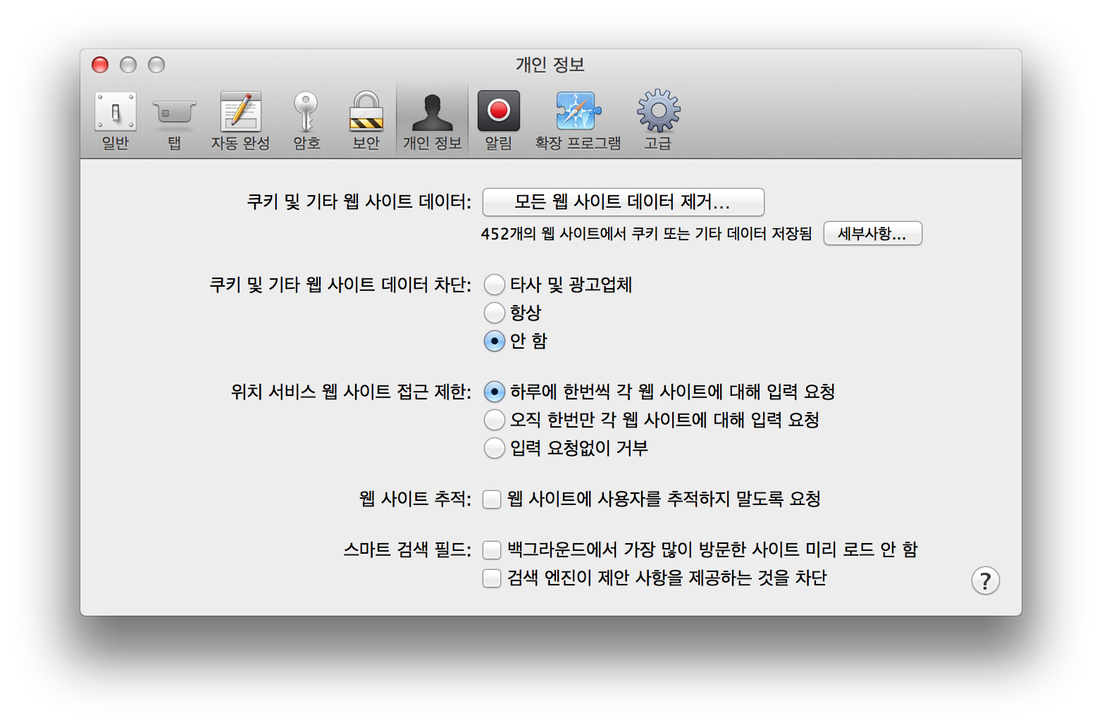 C. SSO 사용 시 Safari 설정 : IE와 마찬가지로 타 도메인에 대한 쿠키를 허용하지 않으며, 다음과 같이 설정한다.