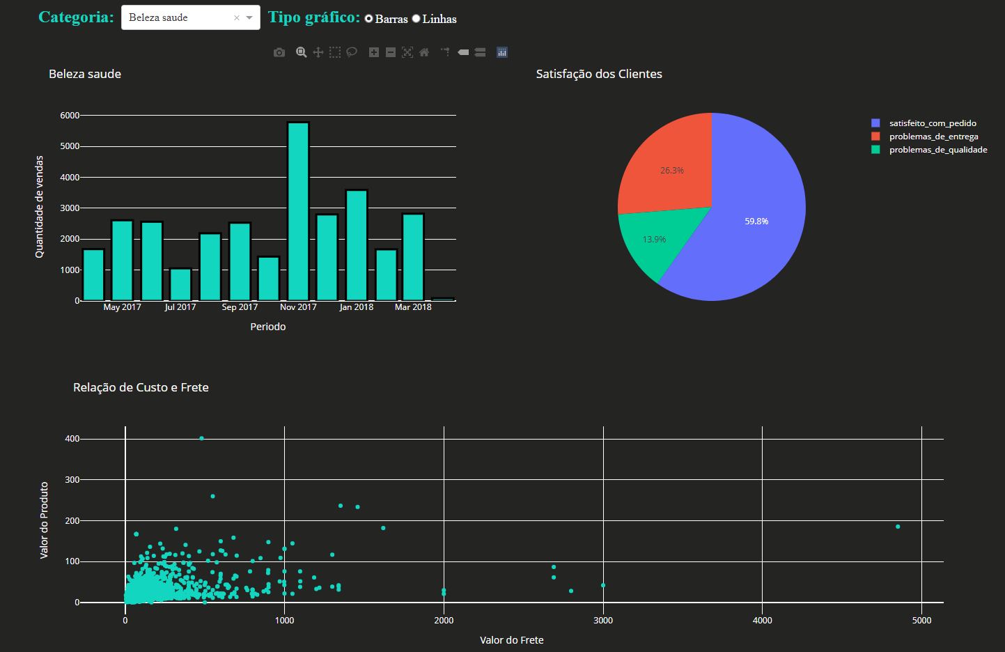 Projeto realizado em grupo, que busca aprendizagem na aera da lógica de programação, com a criação de dashboards interativos.