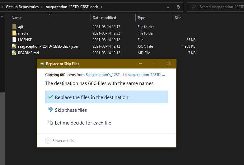 deck.jsontoraagaception-12STD-CBSE-deck.json. Then copy all the folder contents. - Open GitHub desktop, and click