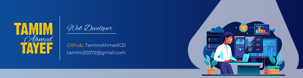Hi there! I'm Tamim Ahmed, an aspiring web developer from Bangladesh. I'm passionate about building creative and functional web applications, with a focus on both the front-end and back-end. Currently, I'm sharpening my skills in Full-Stack Development, MongoDB, and enhancing my frontend expertise.