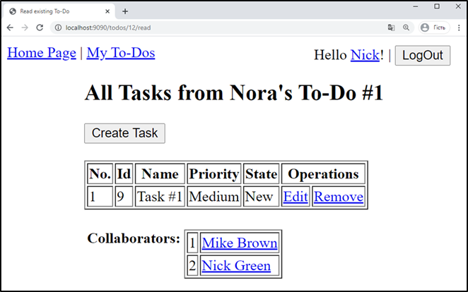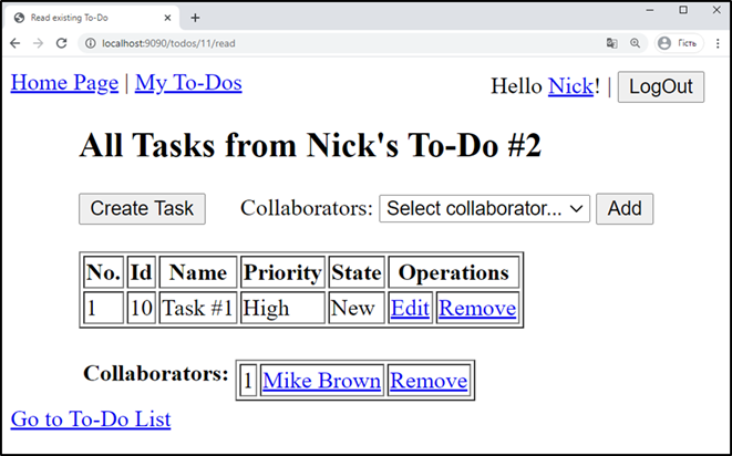 After going to the “All To-Dos of …” page, display for user the list of To-Dos where he is owner or collaborator. If user does not owner To-Do, then he isn't allowed to delete or edit this To-Do.